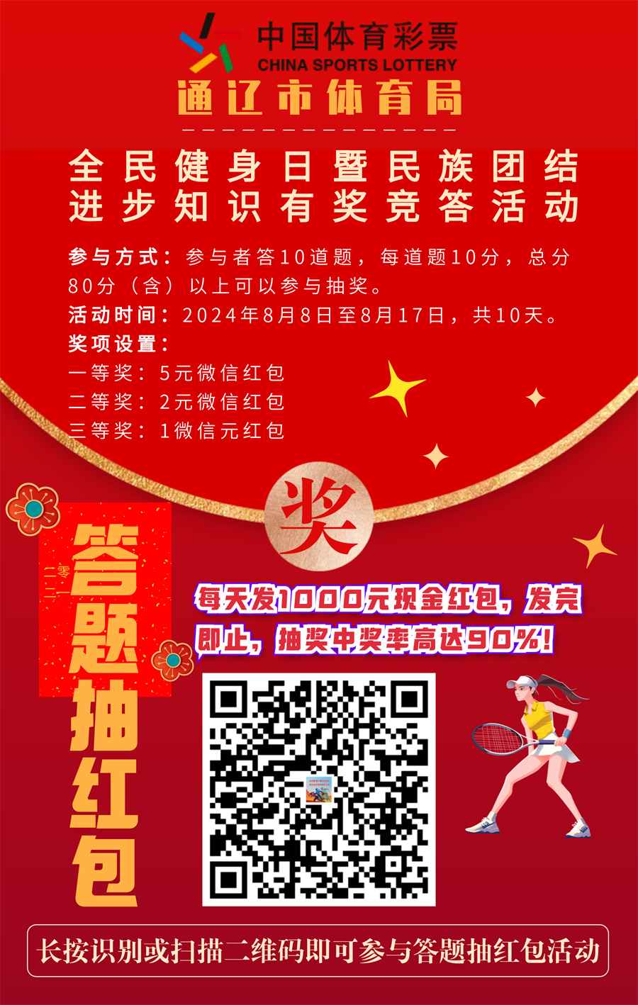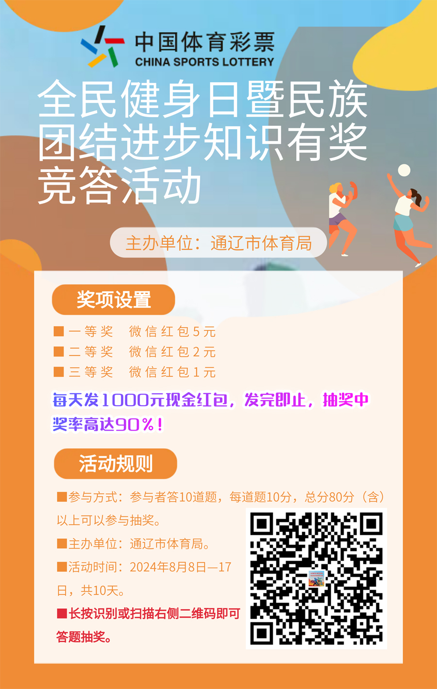 2024年8月5日,通遼市大尚網(wǎng)絡(luò)技術(shù)服務(wù)有限公司與通遼市體育局達(dá)成合作協(xié)議,大尚網(wǎng)絡(luò)公司負(fù)責(zé)通遼市體育局“全民健身日暨民族團(tuán)結(jié)進(jìn)步知識有獎競答活動”系統(tǒng)開發(fā)制作工作,活動正在進(jìn)行中,敬請期待。